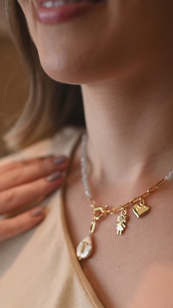 Colar Profissões Pins Removíveis Com Pérola Barroca e Inicial 50cm