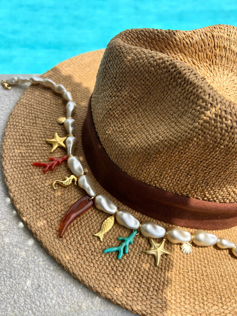As pérolas barrocas — únicas e cheias de personalidade — ganham destaque ao lado de elementos marinhos, criando um visual moderno, feminino e atemporal. Perfeito para quem ama acessórios que contam histórias e iluminam o look com naturalidade e estilo.