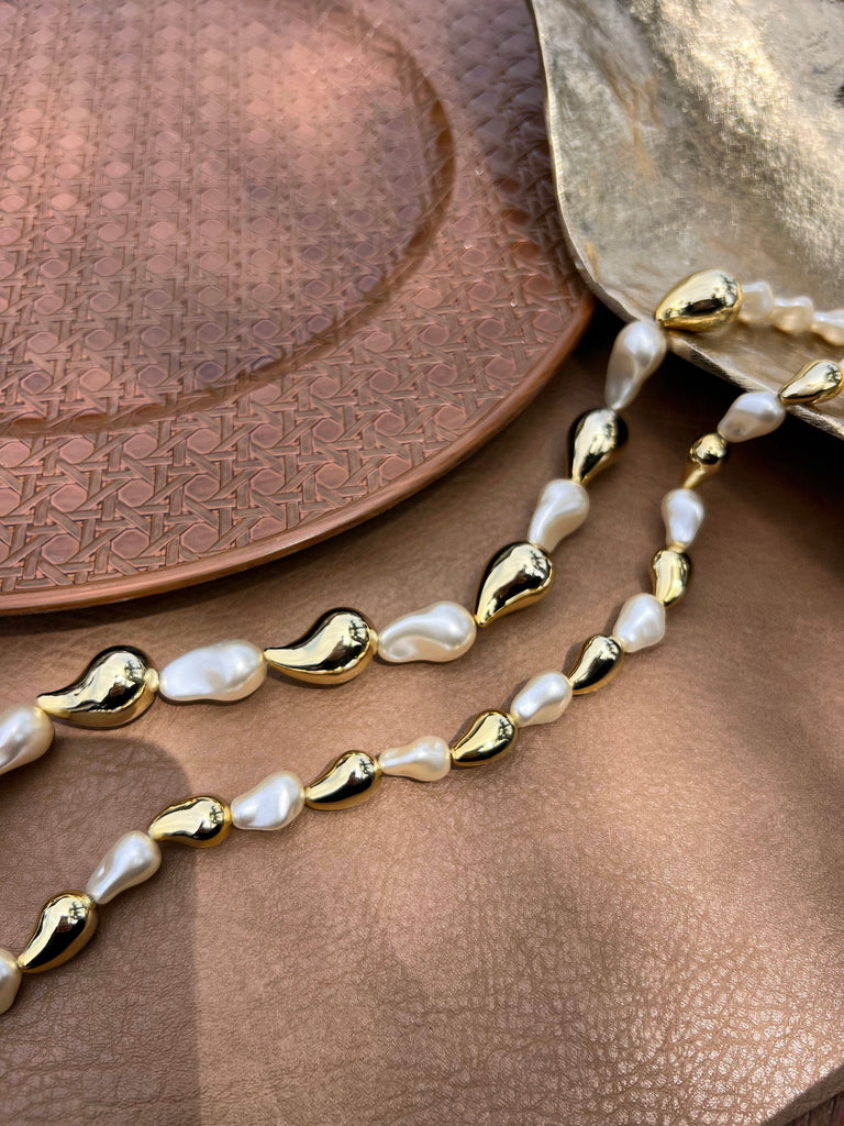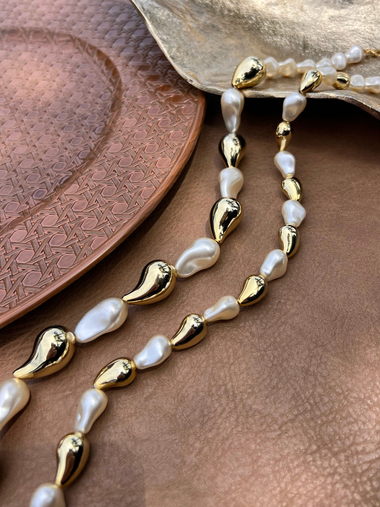 Mix De Dois Colares De Pérolas E Orgânicos Dourados Acrílicos
