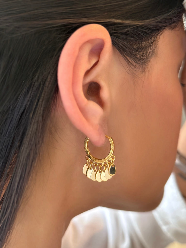 Brinco argola em banho de ouro com detalhes em gotinhas tem o acabamento em banho ouro 18k, proporcionando brilho duradouro e sofisticação. Enquanto as gotinhas adicionam movimento e leveza ao design. Ideal para complementar looks do dia a dia ou ocasiões especiais!
