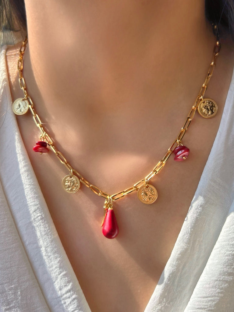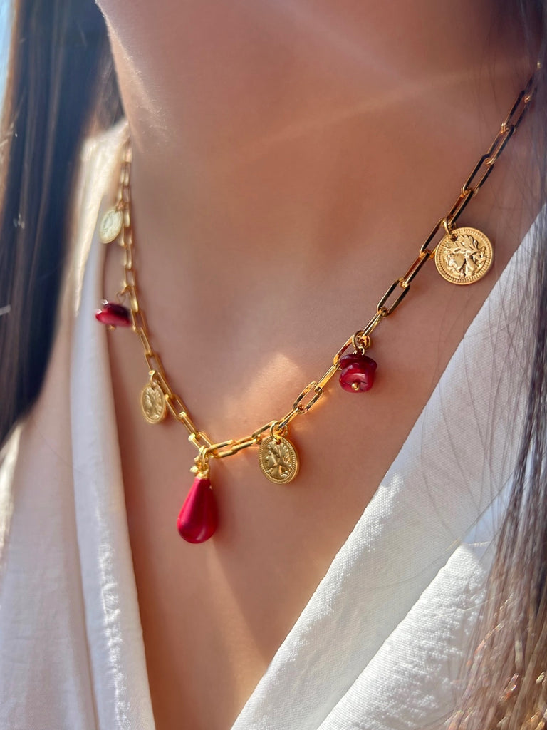 Colar Com Pingentes E Pedra Natural Jade Rubi 45cm