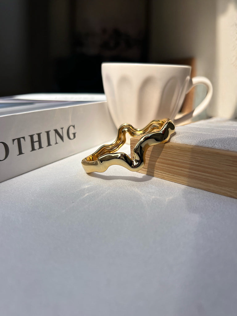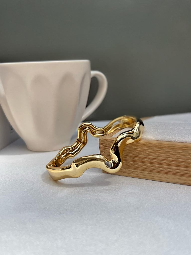 Bracelete Ondas Orgânico Banho Ouro 18k