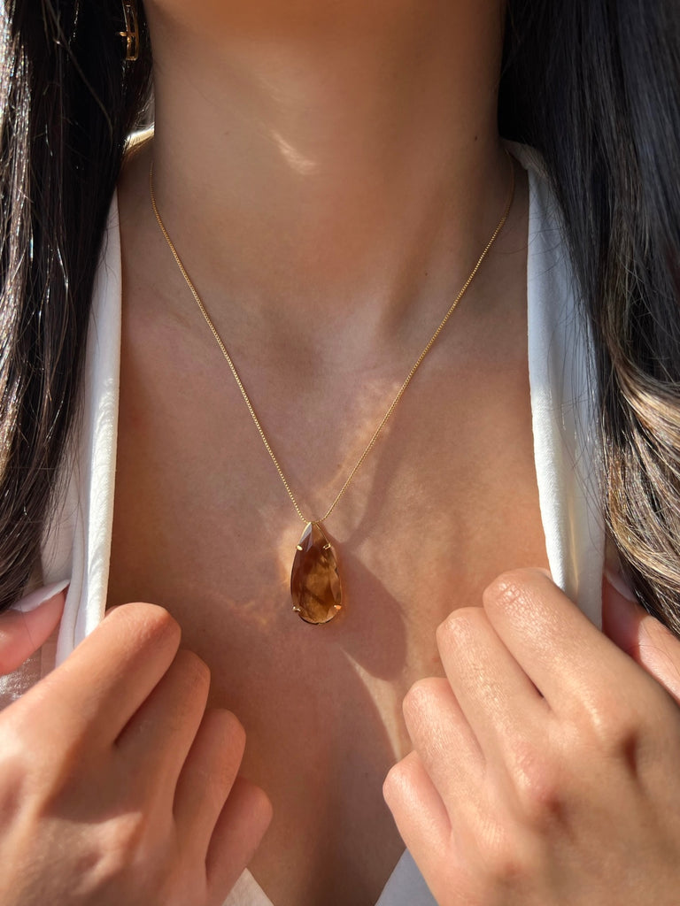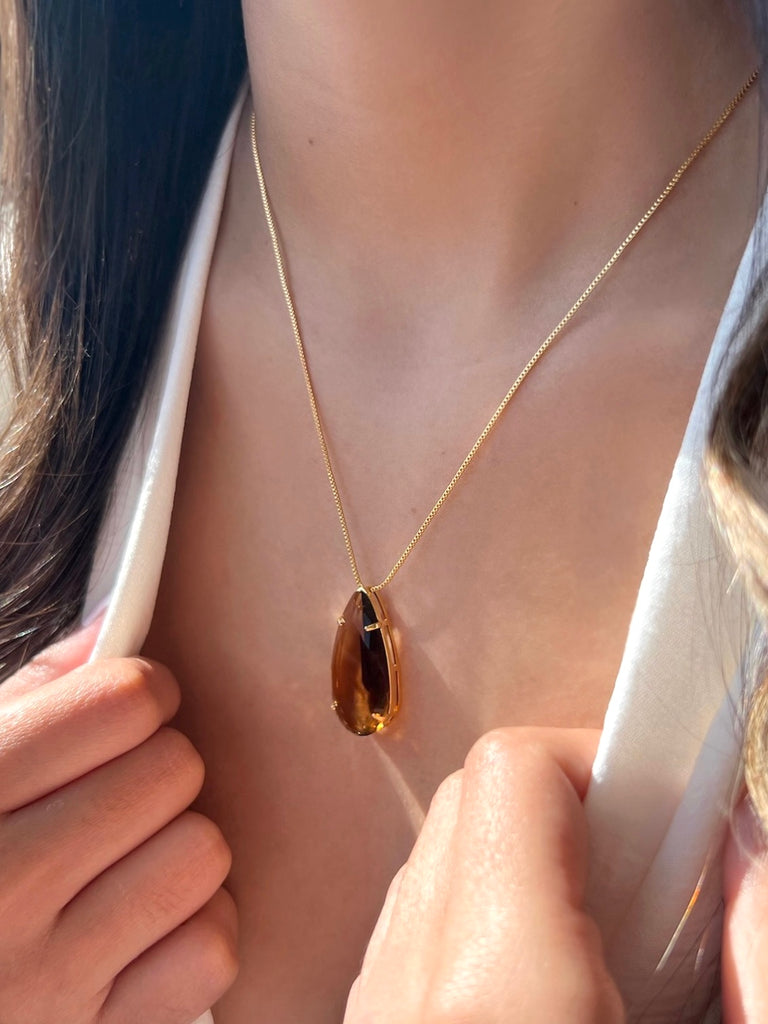Este colar com pedra em formato de gota na tonalidade marrom exala elegância discreta. Seu design minimalista valoriza o brilho natural da pedra, ideal para realçar looks sofisticados com um toque sutil e refinado. Perfeito para quem busca um acessório que une beleza clássica e versatilidade.