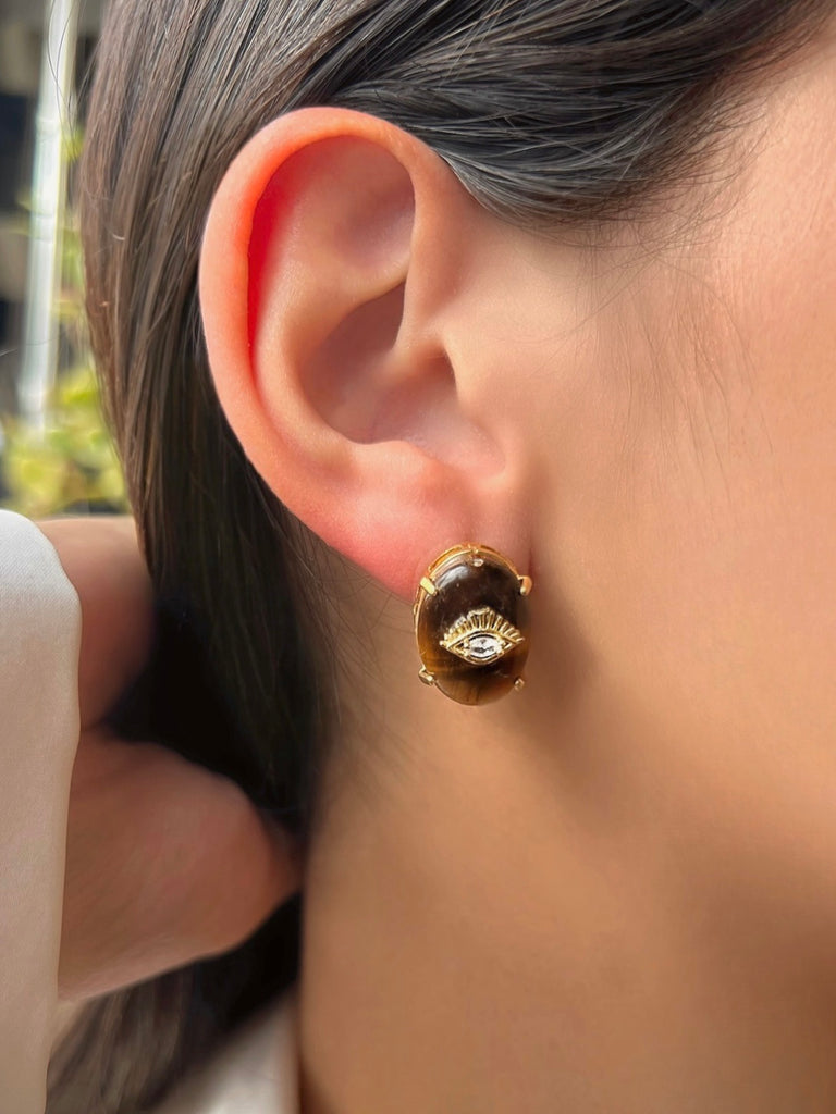 Adicione um toque de charme ao seu visual com o Brinco Oval Marrom Com Olho Cravejado. Feito com material resistente e leve, este brinco é perfeito para completar qualquer look com estilo e elegância.
