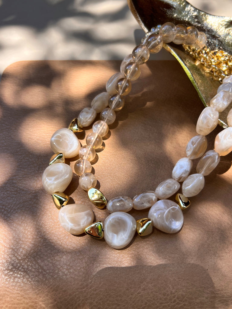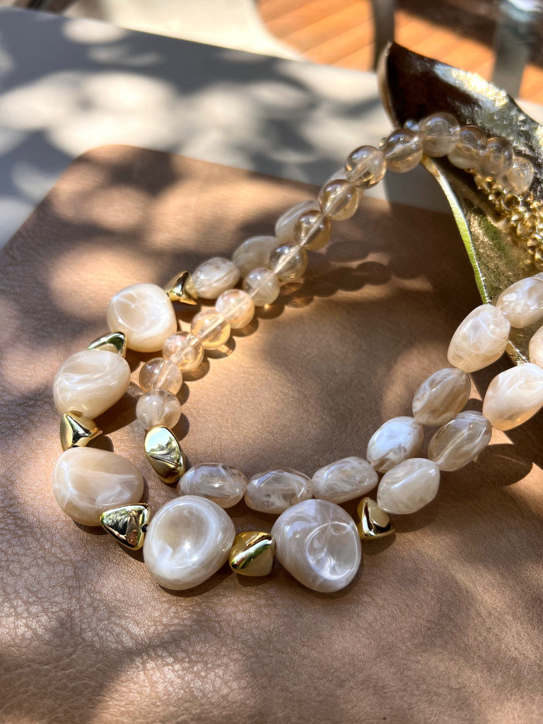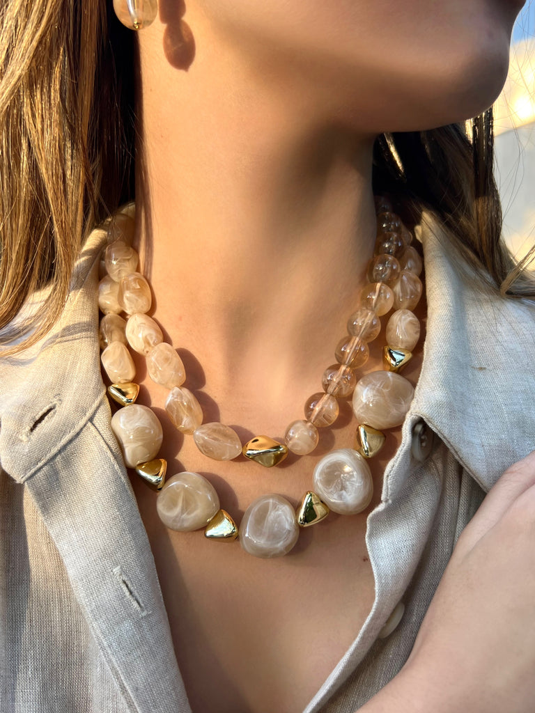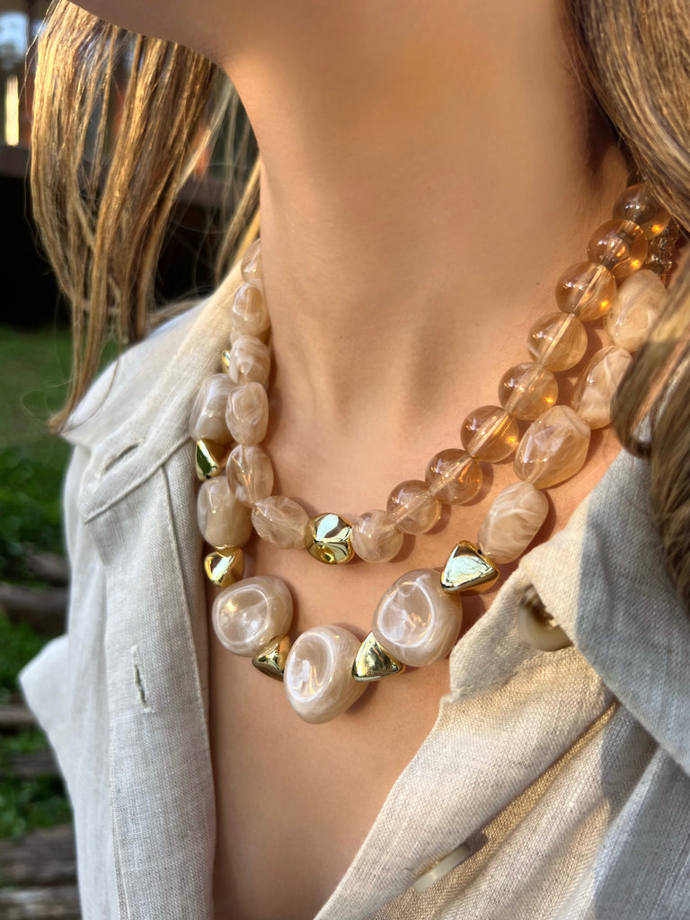 Mix De Dois Colares Capri e Amalfi Pedras Orgânicas Cor Bege Rajado 45cm