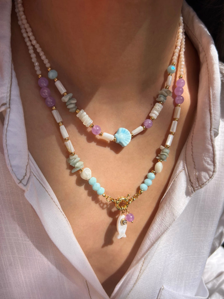 Este mix de dois colares linha mar combina pedras naturais, trazendo um toque divertido e leve para o seu visual. Perfeito para quem deseja expressar um estilo descontraído e cheio de personalidade. Use e sinta-se pronta para qualquer aventura!