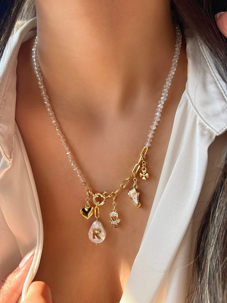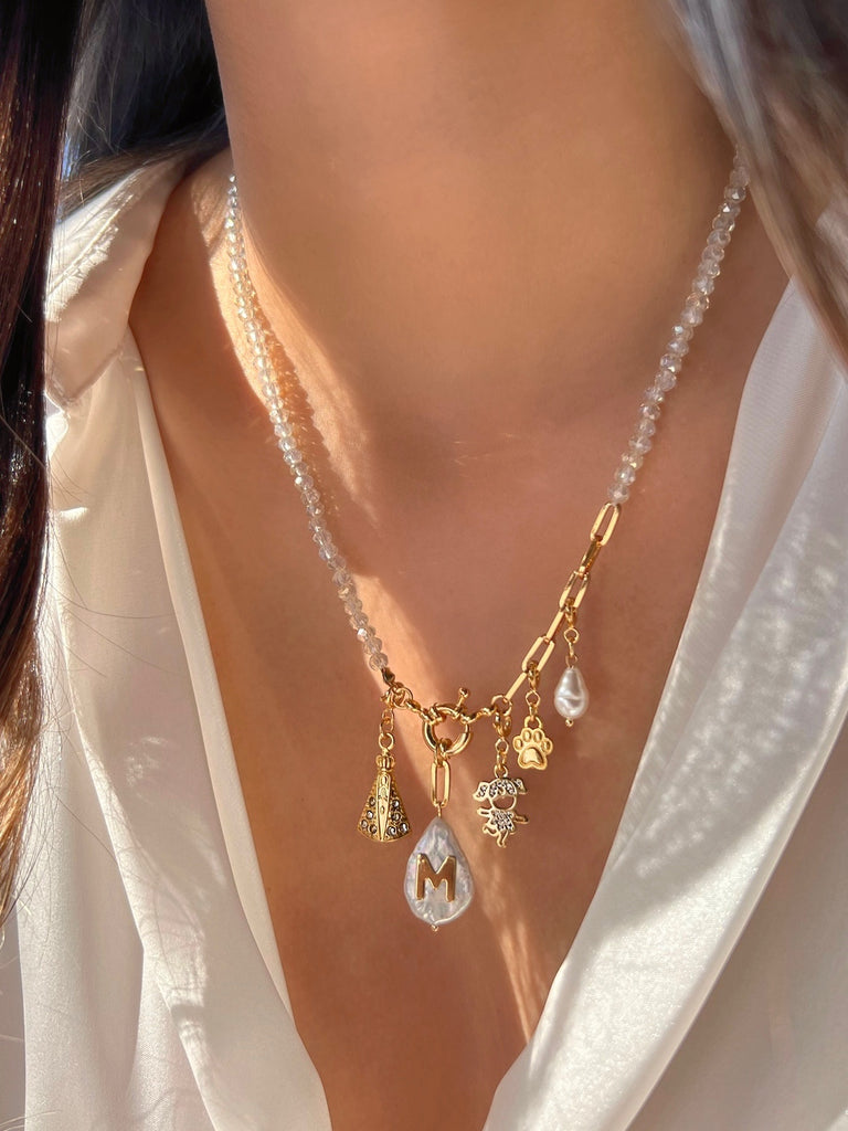 O Colar Com Inicial Pérola Barroca 50cm é um acessório único e exclusivo feito de maneira personalizada pra você, podendo escolher qual inicial vai ser colocada no colar e o pingente representando a sua história caso deseje.