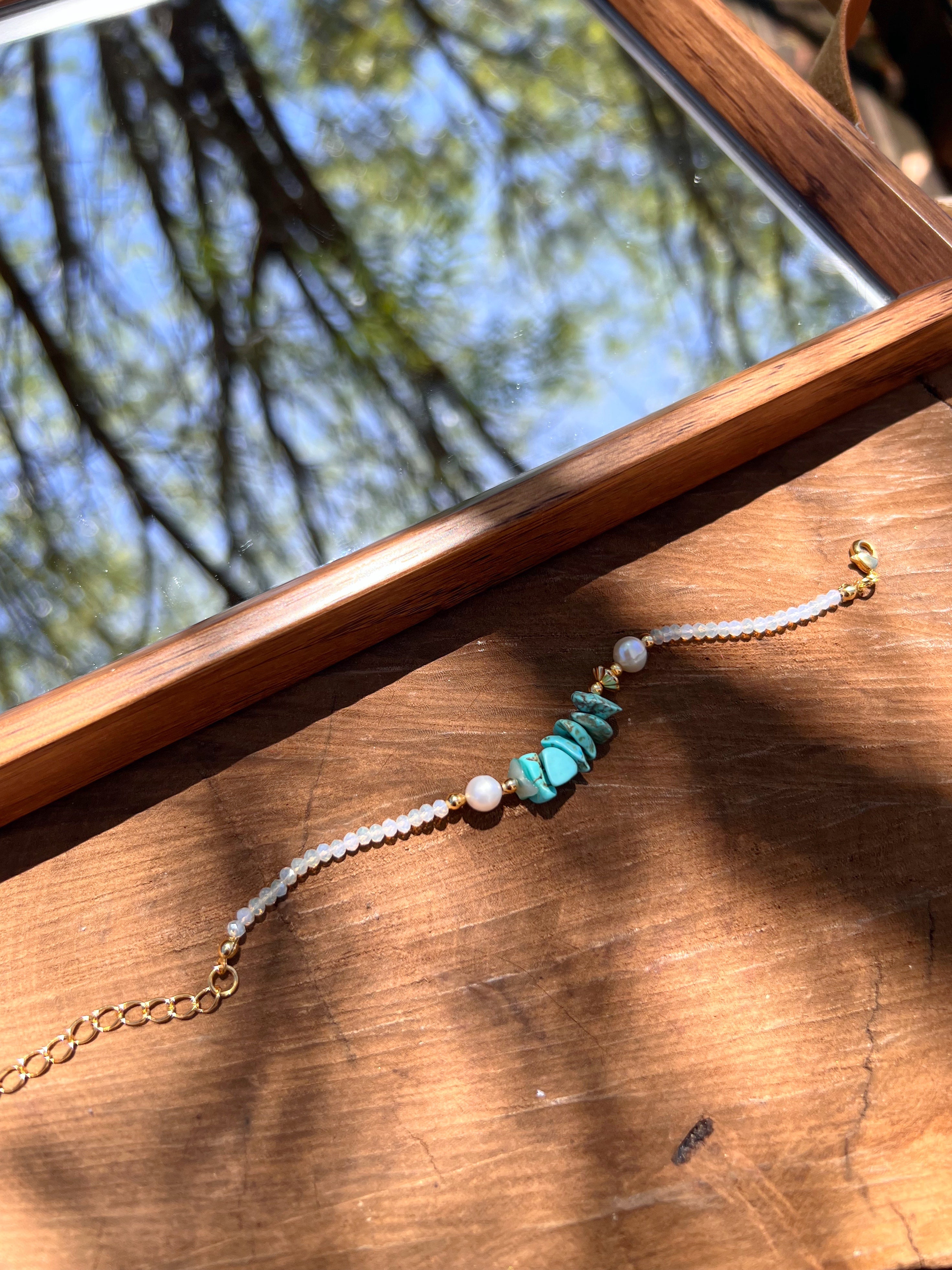 Pulseira Maite Com Cascalhos Turquesa, Pérolas Água Doce16cm