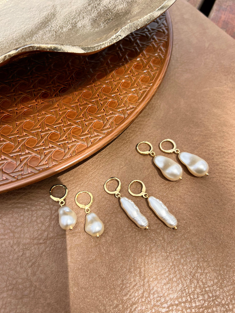 Um clássico que nunca perde o charme. Este brinco de argola traz uma pérola barroca acrílica média pendente, criando um visual suave, feminino e atemporal — perfeito para quem ama elegância sem esforço.