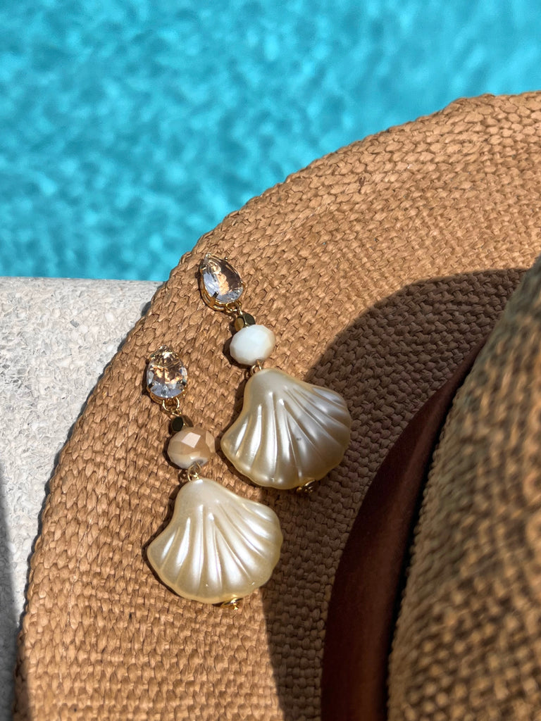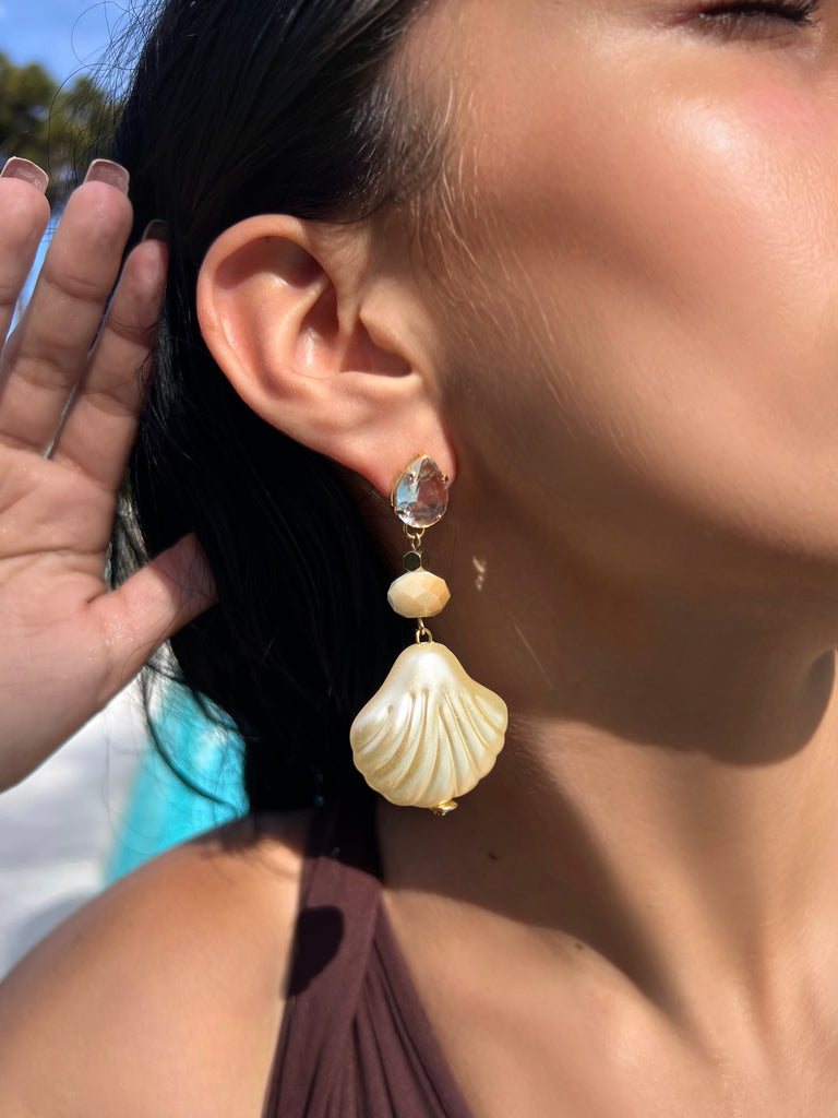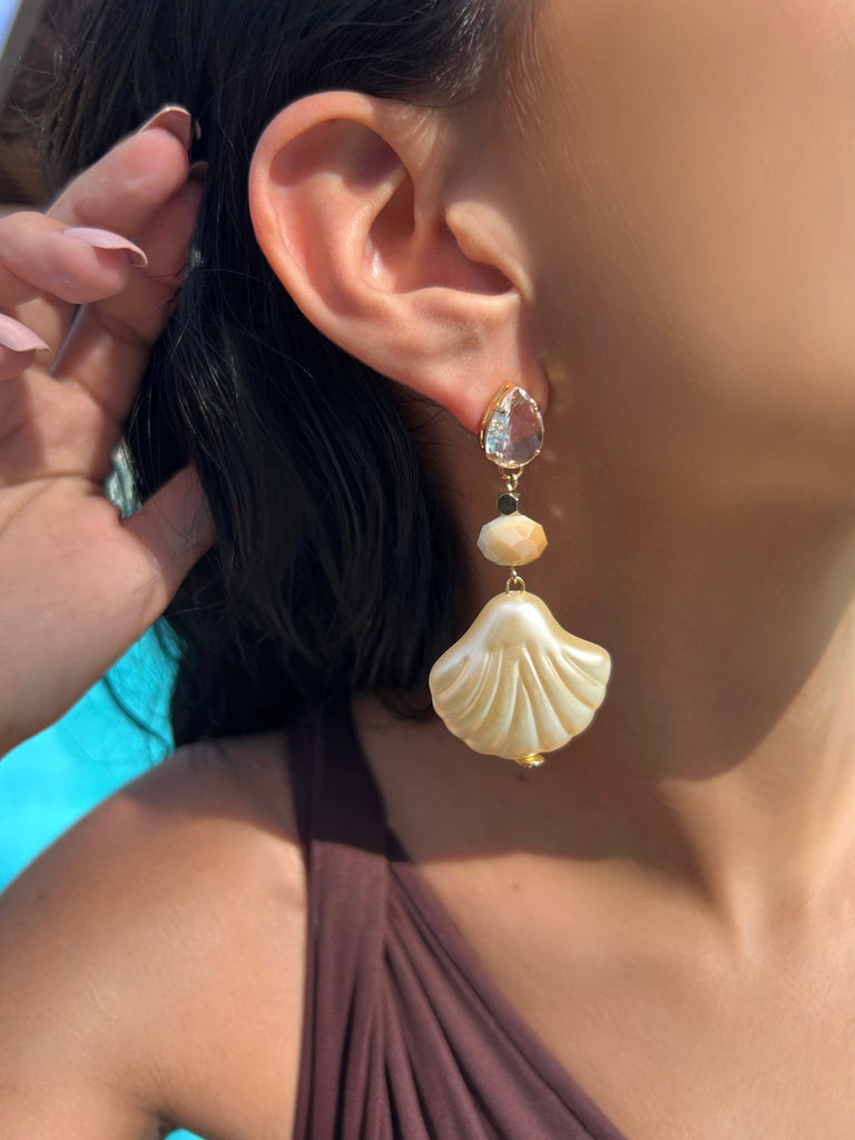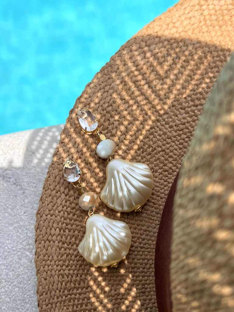 Brinco Gota Cristal Com Concha Pérola E Hematitas
