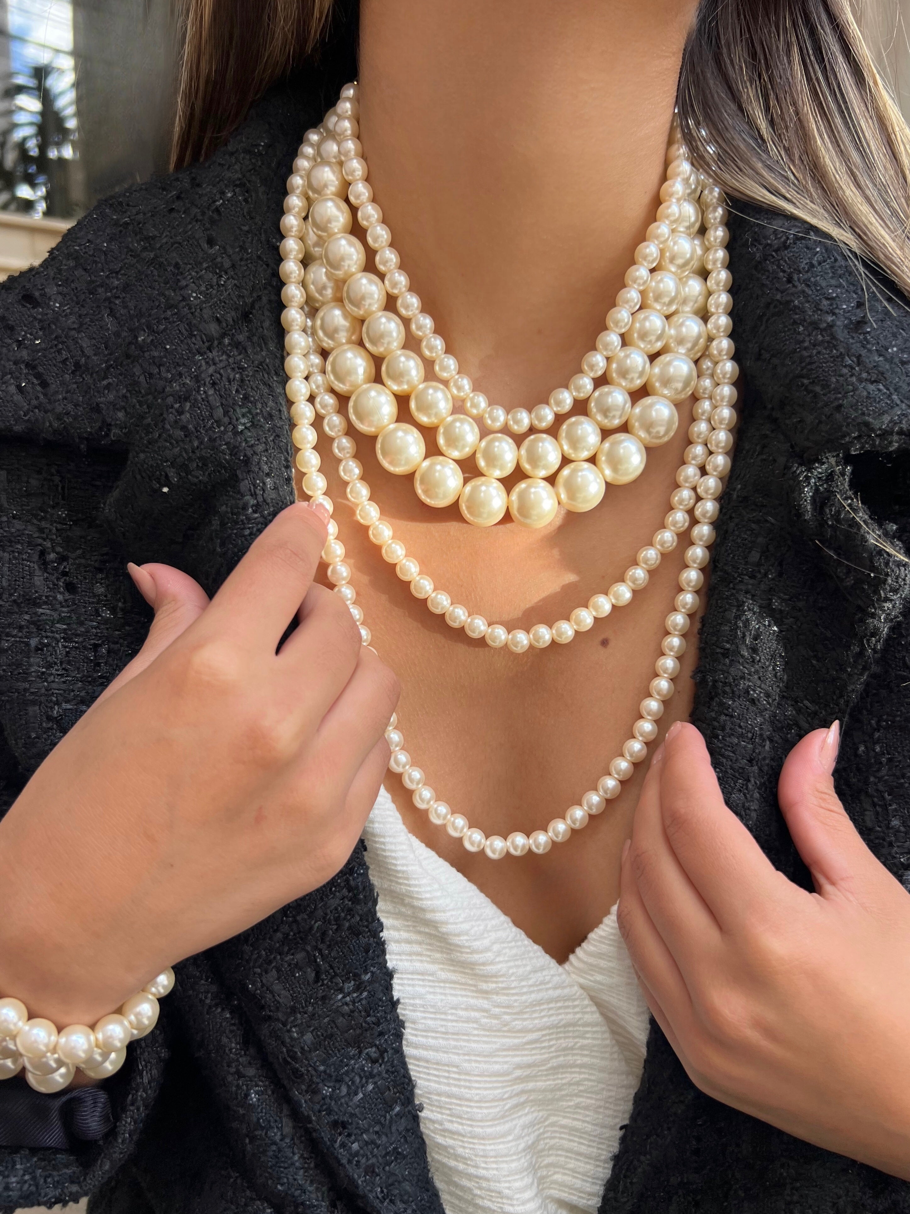 Baixo estoque!O Mix Com 4 Colares De Pérolas é o clássico que você precisa ter! Composto por Colar De Pérolas Volta Única 70cm, Colar De Pérolas Média, Colar De Pérolas Grande e Colar De Pérolas Volta Única 90cm.